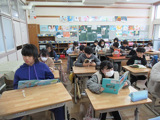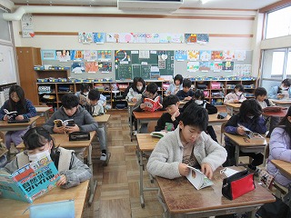 4年1組では、朝読書が行われていました。