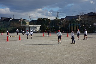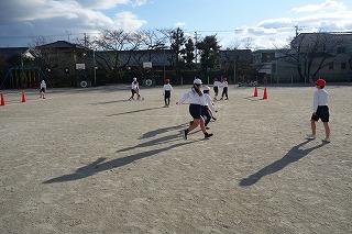 4年2組の体育は、サッカーでした。少人数のチームに分かれて、ミニゲームを行いました。
