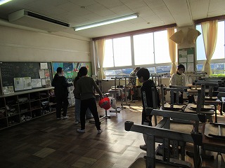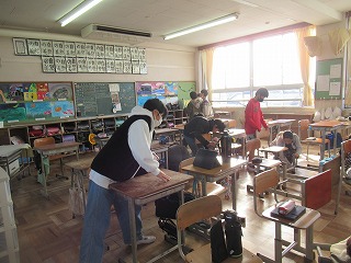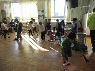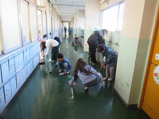 今日は、大そうじをしました。みんな一生懸命、学校をきれいにしていました。