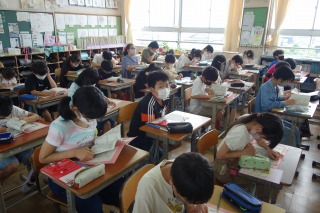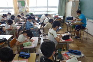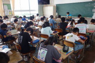 6年1組の学級活動は、修学旅行の行程の細部の説明でした。しおりを見ながら、話を聞きました。