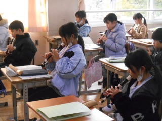 リコーダーの練習をしていました。しっかり楽譜を見て演奏していました。