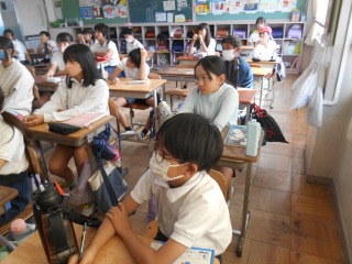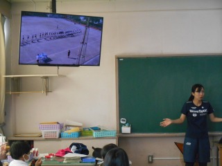 ミワリンピックに向け、タブレットで写した動画を見ながら、動きの修正が必要なところを確認していました。