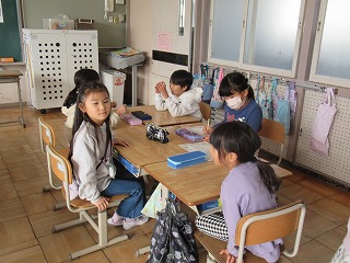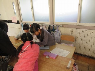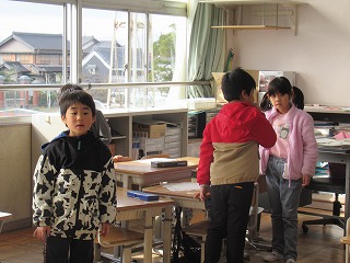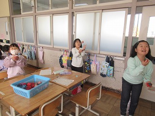 1年生が、来年度入学してくる園の子たちと交流会をします。その準備や練習をしていました。