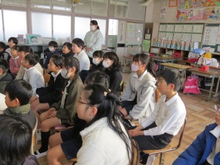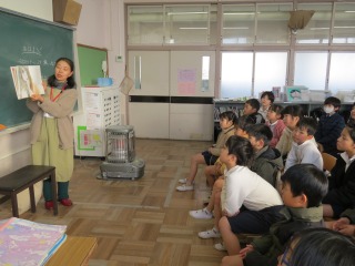 ゆきおんなのお話でした。今の子どもたちは、ゆきおんなを知らないかもと思って選びましたとおっしゃっていました。興味深そうに子どもたちは絵を見ながら聞いていました。