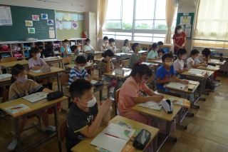 4年1組の算数は「小数についていろいろな見方をしよう」の学習でした。小数の位を分数を使ってあらわしたりしました。
