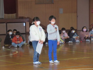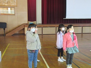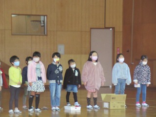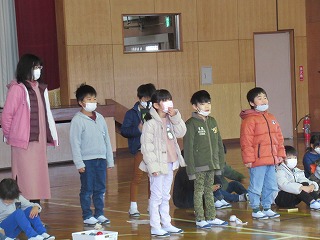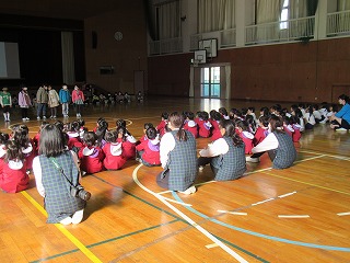 本日、年長さんをお招きし、1年生がなかよし会をひらきました。1年生の子ども達も先輩として一生懸命がんばりました。年長さんの子どもたちも、しっかりお話を聞き、すばらしい態度でした。