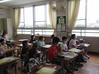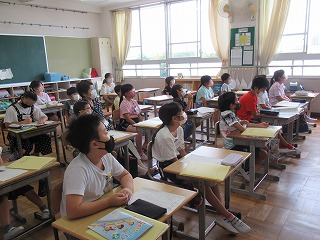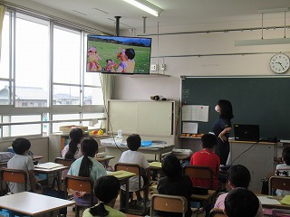 4年2組が外国語活動を行っていました。モニターをしっかり見て、みんな意欲的に学習に取り組んでいました。