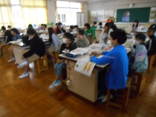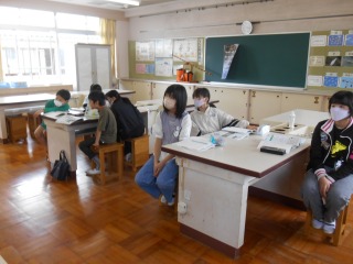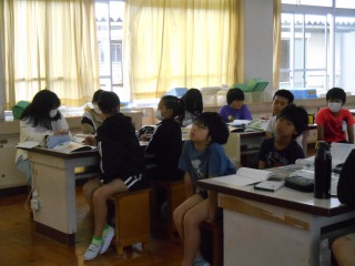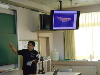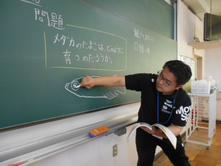 メダカの卵について学習をしていました。メダカの特徴を、先生の書くイラストとモニターの写真で確認をしていました。