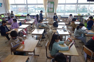朝の教室では、みなさんが一日の用意や読書などをして過ごしていました。