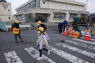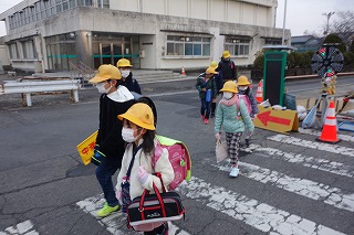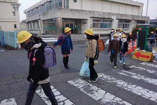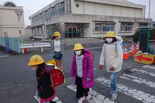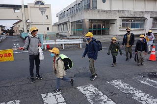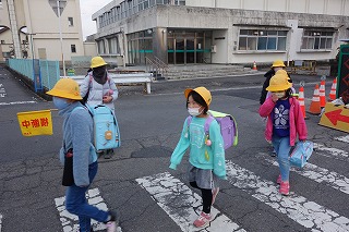 朝の北門では、みなさんが元気に登校していました。一列に並んで歩いていました。