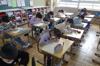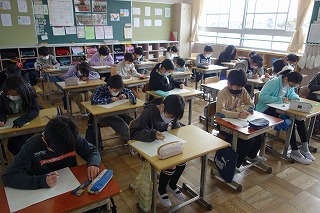 4年1組の算数は、「たしかめよう」の学習でした。プリントの復習問題に取り組みました。