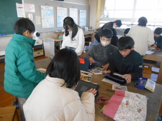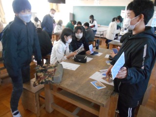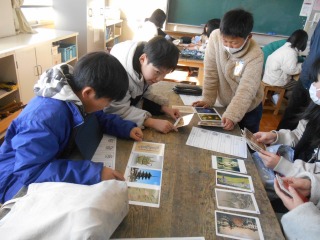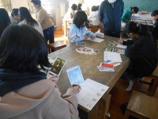 カードから自分の好きな絵や写真を選び、特徴をワークシートにまとめていました。