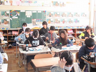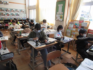 4年1組では、書写の時間「白馬」という文字を練習していました。
