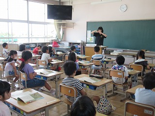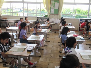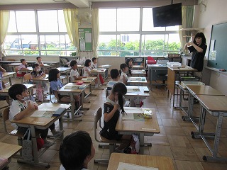 1年1組は、国語の学習をしていました。 鈴木先生の質問に、みんな大きな声で答えることができていました。姿勢も良くて素晴らしいですね。