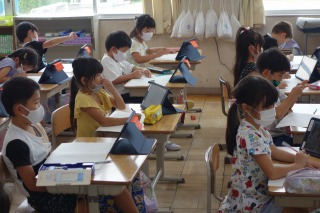 1年2組の図工は『のってみたいな いきたいな』の学習でした。自分の乗りたいものから発想を広げて、何をかくのかを考えました。