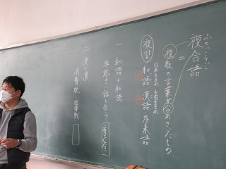 5年1組では、国語の授業が行われていました。複合語について、学習していました。先生の実生活から、子どもたちは思い起こしていました。