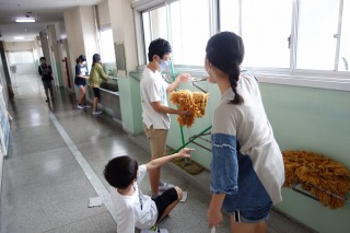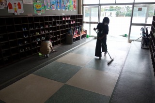 美和小学校のみなさんは、とてもしっかりと掃除に取り組めます。教室の中でも、廊下でも、ほうきやぞうきんを使って一生けん命学校をきれいにしています。歴史のある美和小学校がきれいなのは、みなさんのがんばりのおかげです。