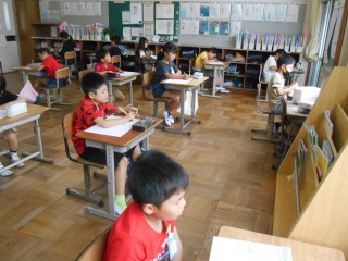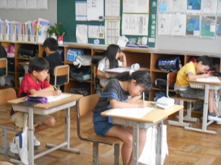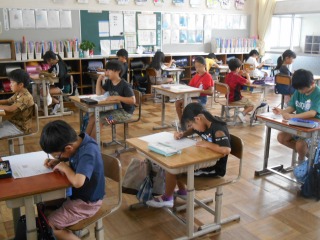 テストを行っていました。聞き取りテストが終わり、どんどん問題を解いていました。
