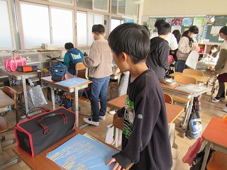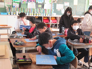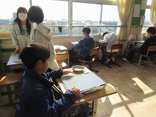 5年1組は、本日、臨時で図画工作の版画づくりに取り組んでいました。