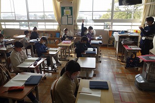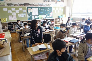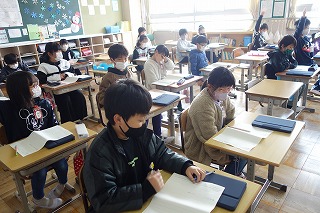4年2組の国語は、作文の構想の仕方についてプリントをもとにみんなで確認しました。