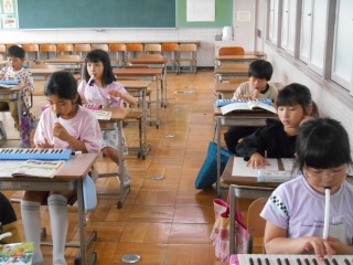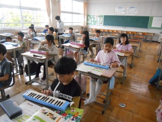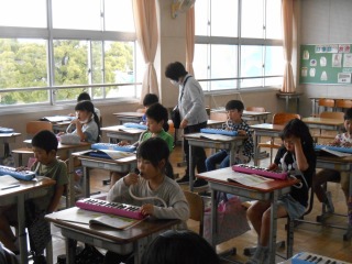 鍵盤ハーモニカの合奏をしていました。楽譜を見ることなく演奏できる子が何人もいました。