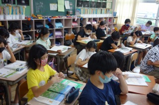 5年2組の社会は、テストでした。テスト前に、ひとりひとりで学習内容の復習をしました。
