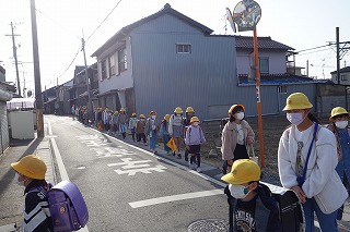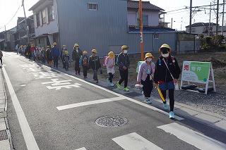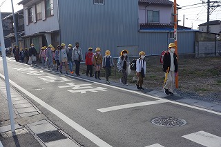 今朝は、6年生との最後の登校となりました。1年間、班の皆さんの安全に気を配ってくれていました。今日も列の後ろから見守っていてくれましたね。