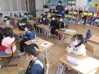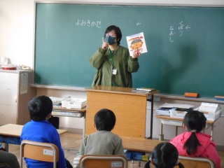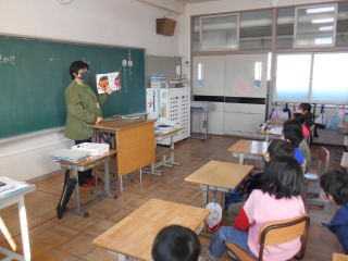 読み聞かせの方のお話と絵本をよーく聞いていました。