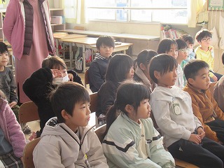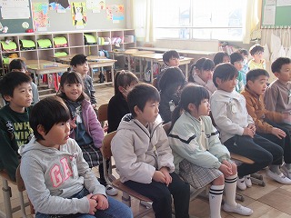 1年1組で、読み聞かせを行っていただきました。子どもたちは目をきらきらさせ、真剣に聴きいっていました。