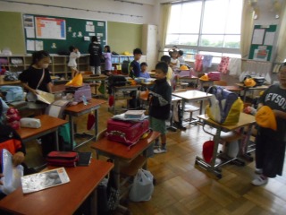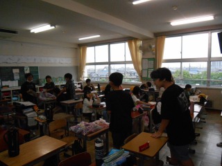 雨でカッパを干したり、靴下を履き替えたりする姿が見られました。