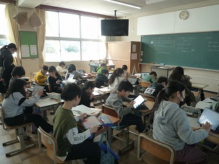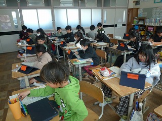 タブレットも活用しながら、道具やくらしの変化を調べ、まとめました。