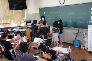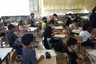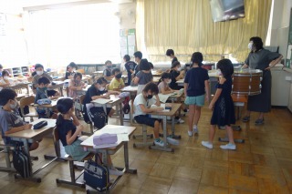 3年1組の理科は、音の学習でした。大太鼓を使って、音と振動(ゆれ)の関係を調べました。