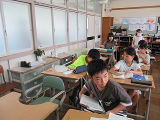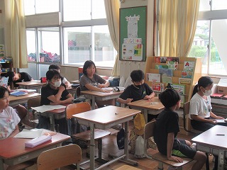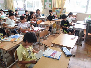4年1組では、授業が始まる前、教科書やノートなどを準備していました。