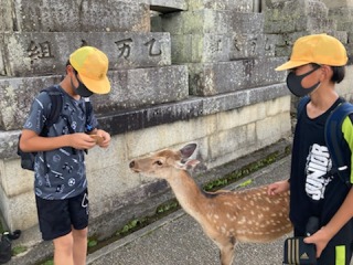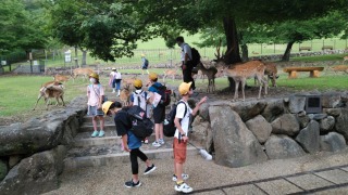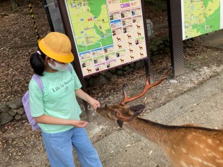 奈良公園には、シカがたくさんいます。おとなしいシカや、少しせっかちなシカなど、性格はいろいろです。