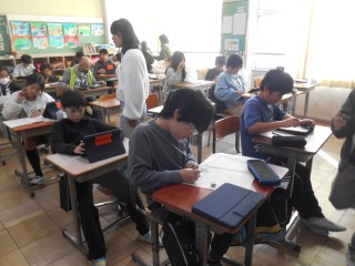 タブレットには、学習のためのアプリがたくさん入っています。やるべきことが終わると、タブレットを使ってそれぞれの課題に合わせて、漢字や計算などの各教科の学習を行うことができます。