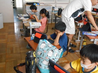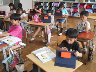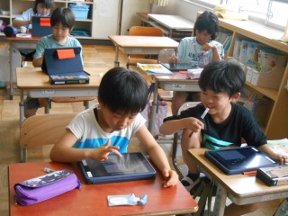 線路を完成させるパズルを、タブレット上で作っていました。最終的には、すべての線路がつながらないといけないので、頭をぐるぐる回転させていました。完成すると、電車が走るのかな?