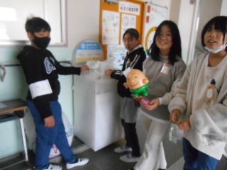 児童会と環境委員が各教室を回り、募金を呼び掛けていました。募金だけでなく、ぷちぷちも忘れずに空気を抜く委員さん。頑張っています!