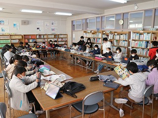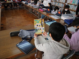 社会と国語のコラボレーション授業。愛知の工芸品の調べ学習です。