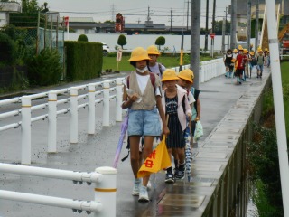 曇天でしたが、登校の時間帯は雨が上がりました。今日も多くの方に見守られながら、登校してきました。