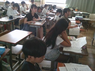 柱状グラフを描く練習をしていました。棒グラフとの違いも分かったようです。