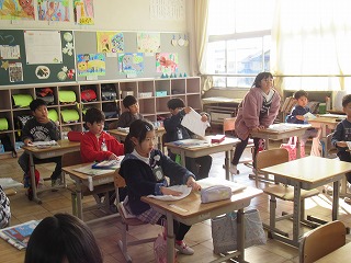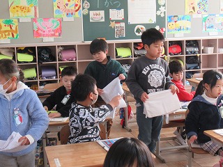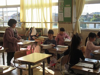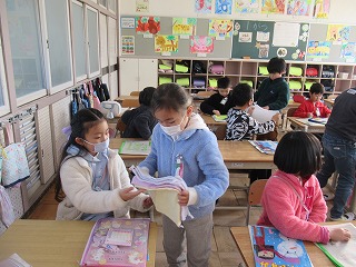 1年2組では、朝の時間に、ぞうきんなどの回収を行っていました。