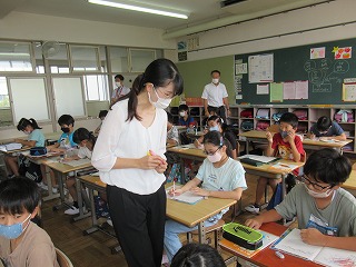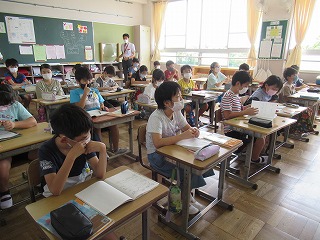 4年1組で、算数の研究授業が行われました。思考を働かせる問題に取り組みました。みんな落ち着いて、学習に取り組んでいる姿が立派でした。