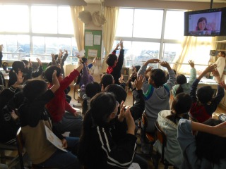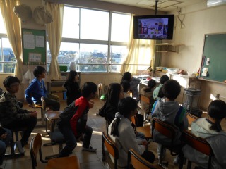 沖縄県の名護小学校との交流を、インターネット炉通じて行いました。名護市とあま市は、災害協定を結んでおり、災害時にどう助け合うかを発表していました。
