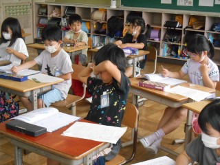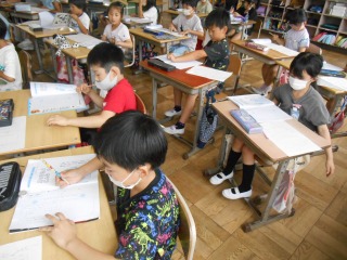 校内で見つけた興味のあるものについて、紹介文を作文する準備をしています。