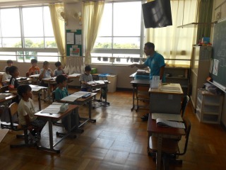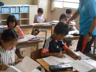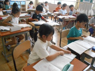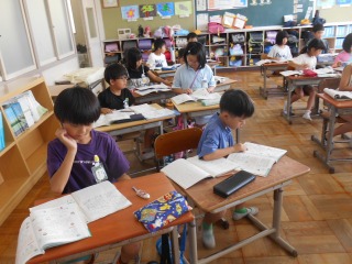かさの計算をしていました。L、dL、mlの単位変換を繰り返し練習していました。