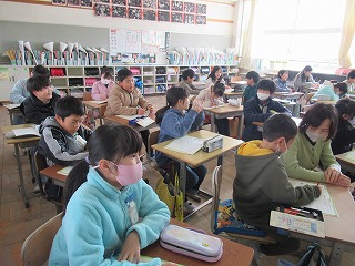 3年1組は算数の時間でした。算数なのですが、教科書にある説明する問題を解いていて、国語の時間のような学習をしていました。