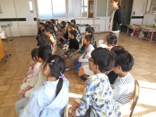忍者のような犬が主人公の絵本でした。イラストや内容の面白い絵本で、子どもたちも楽しんでいました。。