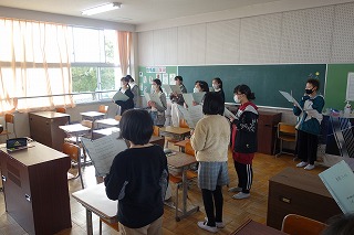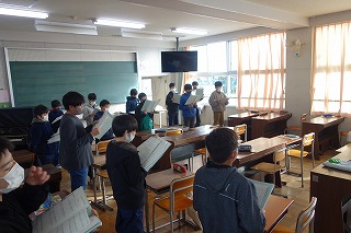 6年2組の音楽は、音楽室で、窓を全て開けてマスクをしたまま歌を歌いました。