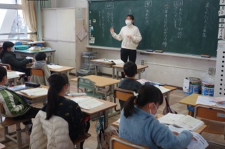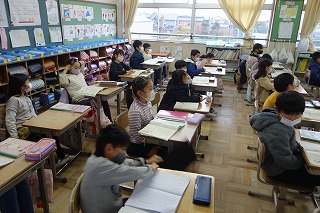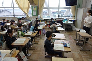 2年1組の国語は、「楽しかったよ、二年生」の学習でした。作文の書き方の説明を聞きました。