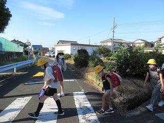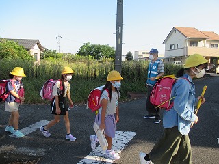 西門の通学班のようすです。今日も見守り隊の方々に見守られ、登校できました。いつもありがとうございます。